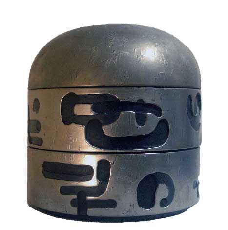| 本当に色々な意味で好い個展でした。三十年振りにお会いして、ご自身が最期を迎える前、大切にお使い頂いているテーブル(錫刷毛目卓)を僕に戻し、作品の良さを理解して新たに使ってくれる方に託すと仰られる方もいらっしゃった。僕も長く続けて来たんだなぁと。。 そして、今までお世話になった上司や、その他大切な方に向けた記念として僕の作品をお使い頂いた芸大の名誉教授で建築家の北河原温さんご夫婦もご来廊頂き、縄文時代のお話で意気投合し楽しくお話し出来ました。そして、僕の自信作 Mushikui-Ju をお求め頂き光栄でした。長く続けてきて良かったと思えた瞬間です。 |