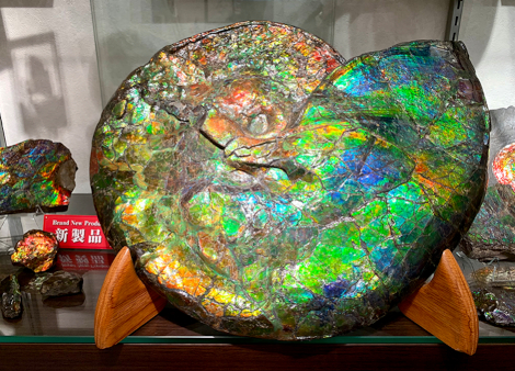 | 新年あけましておめでとうございます。今年も http://urushi-art.net よろしくお願い致します。 先ずは旬が過ぎないうちに、今年の年賀状のお話を。 昨年暮れに触れましたように、今年は丙午なので馬の絵は埴輪にしました。で、これだけでは能がないので、そこを何かで埋めようか・・・と。第一候補は昔撮ったアワビの画像。でも、もっと効果的で美しいものがあました。それは、アンモライト。何これ?という方もおられるかも知れませんが、僕も院生のときジオ科(鉱物学)の同僚から教わるまで知りませんでした。実は、これ約7000万年前に絶滅したアンモナイトの化石が、カナダ・アルバータ州の特定の条件下で「イリデッセンス効果」という虹色の輝きを持つ宝石に変化したもの。それが以下↓になります。 |
