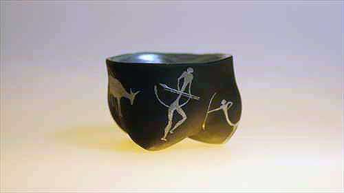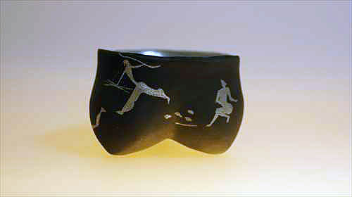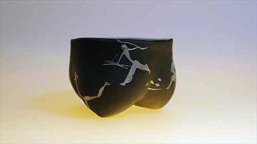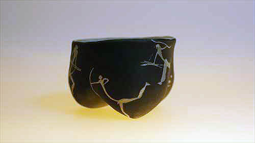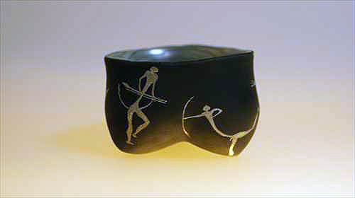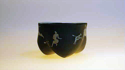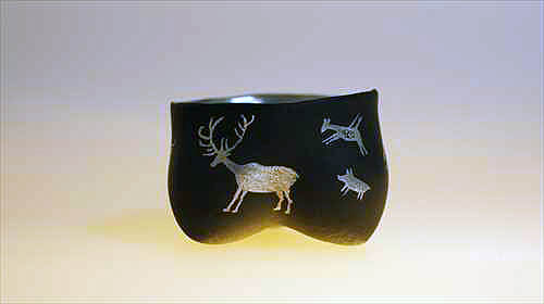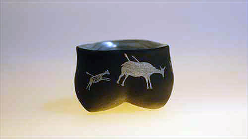| 漆という素材は、近代化以後工業化の発展で生まれた新しい樹脂(プラスチック)によって今という時代(同時代)の素材ではなくなってしまいました。その漆という素材と出会って僕は既に50年近く経ち今に至っています。今では僕らの身の回りにある器は陶器を除いて概ね樹脂(石油由来のプラスティック)となって生活を支えています。僕自身はエコロジストではないのでプラ製品は好きです、漆工芸家なのに・・・。特にイタリアのものはデザインもイカシテいるので一目を置いています。 そういった状況の中、敢えて漆を使うとは何かという問いは、終始僕の脳裏から離れることはありません。そうなると素材とデザインの乖離を埋めたい衝動に駆られ、行き着くところはデザインと素材の統合へと意識は向かいます。そういった流れの結果生まれたのが僕にとっての乾漆です。加えて分業が進んでいる漆工界にあって、乾漆は器など成形そのものが自作になるので、微妙でデリケートな形状を自由に形作れるところも魅力です。 とはいっても、素材と乖離しないデザインを希求すると、畢竟その整合性は古代や石器時代へと遡及することになるのが自然です。結果、僕の場合は古代中国の龍山文化や大汶口文化から大きなインスピーレーションを得ながら成形を進めてきました。それだけでは物足りなくなり、今では人びとの生活の匂いのする物語性をちょっと入れてみたくなり、石器時代ではなく B.C.110年頃のスペイン地中海沿岸の岩に描かれた岩絵や対岸の中東の地中海沿岸の岩絵を異化効果として入れて楽しんでいます。 |