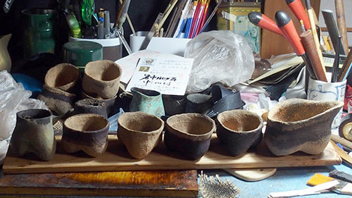| 乾漆の器の成形過程です♬ 無茶苦茶雑然としているなぁ💦 |